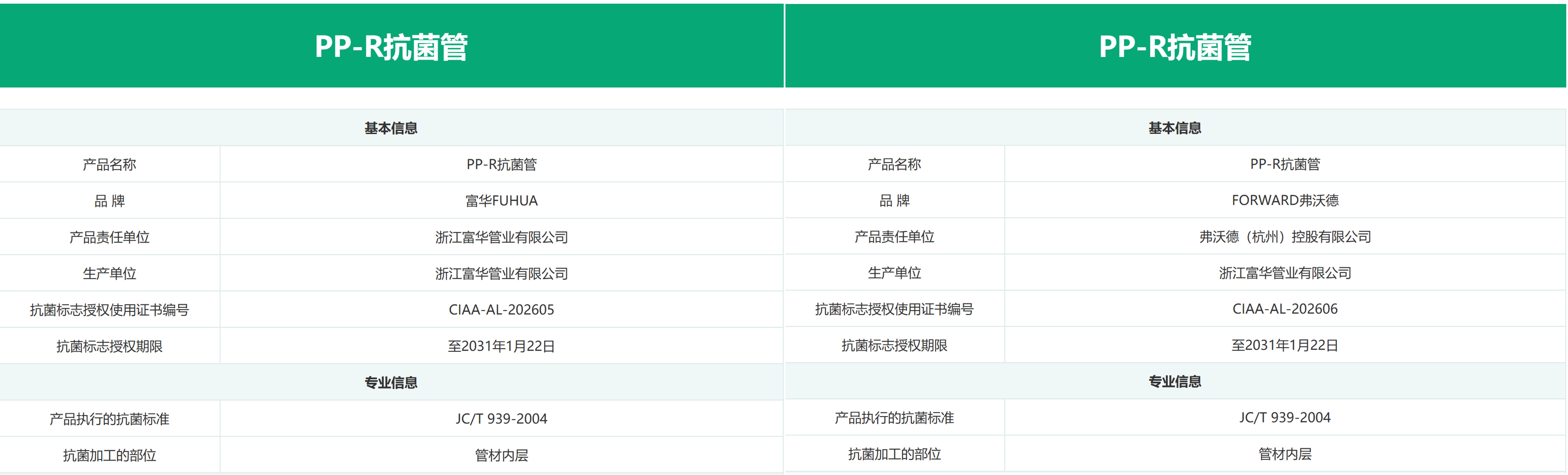 近日,浙江富华管业有限公司和弗沃德(杭州)控股有限公司共同传来喜讯——双方旗下PP-R抗菌管通过中关村汇智抗菌新材料产业技术创新联盟(