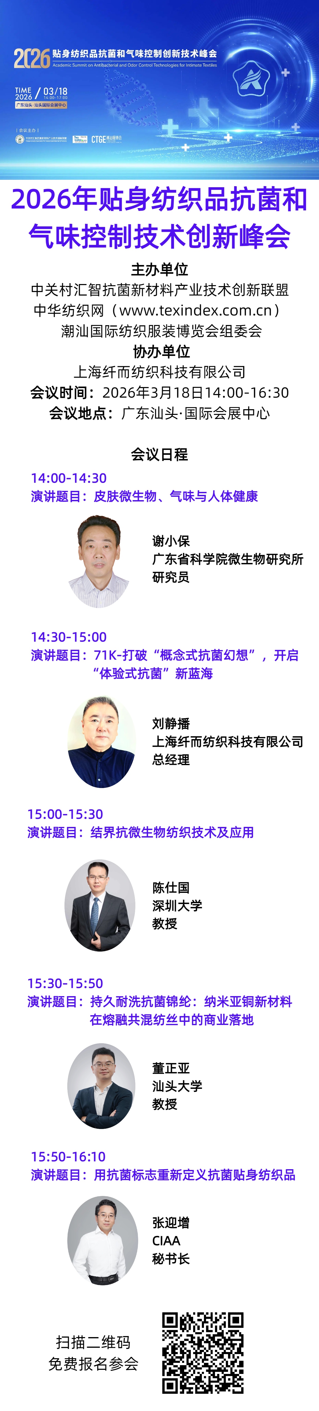 2026年贴身纺织品抗菌和气味控制创新技术峰会发布最新日程