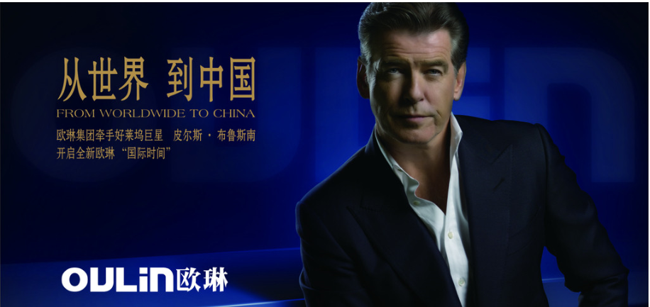 欧琳与皮尔斯·布鲁斯南的合作缘起007电影,而两者自身的特质则让双方的合作珠联璧合,相得益彰。布鲁斯南先生是一位国际级的表演艺术家,尤其是他所塑造的007被誉为“刚强与温柔并济”的邦德,成为最受欢迎的007。布鲁斯南在塑造007形象时闪现的想象力、科技感、未来感与欧琳“精工品质、经典美学 、未来科技”的品牌内涵不谋而合。在生活中,布鲁斯南的睿智、严谨、顾家,与欧琳倡导新欧洲生活美学的品牌内涵有着极高的契合度。