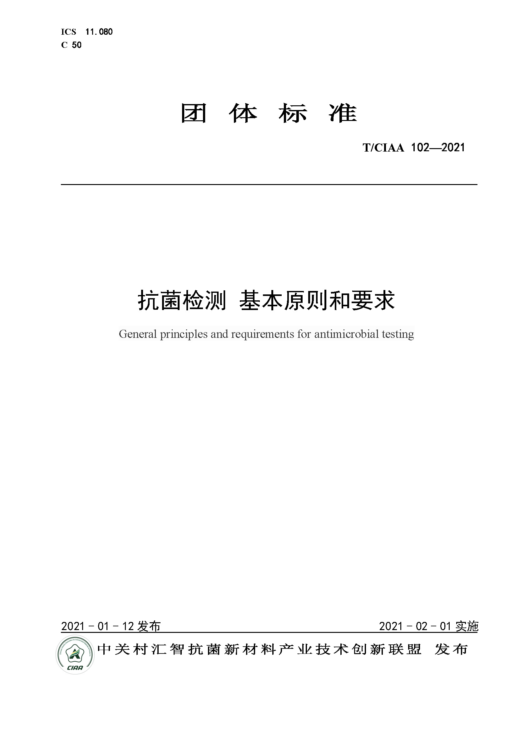标准介绍02 || T/CIAA 102-2021《抗菌检测 基本原则和要求》