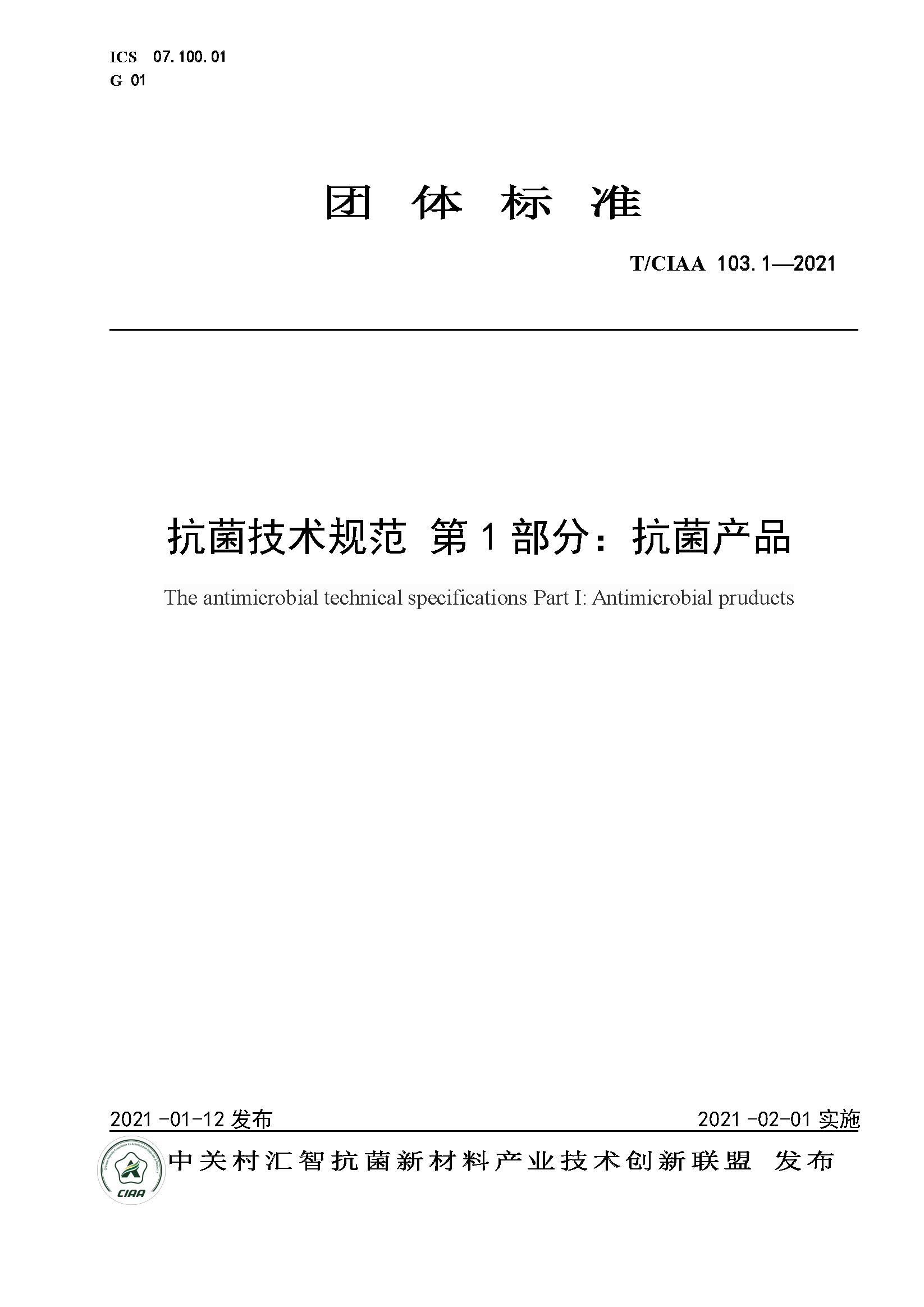 标准介绍03 || T/CIAA 103.1—2021 《抗菌技术规范 第1部分:抗菌产品》