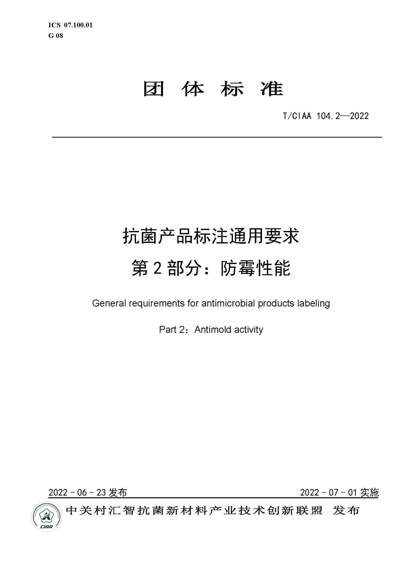 本文件按照GB T 1 1-2020《标准化工作导则 第1部分:标准化文件的结构和起草规则》的规定起草。T CIAA 104《抗菌产品标注通用要求》分两