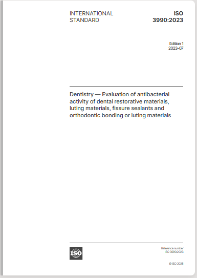 标准编号:ISO 3990:2023中文名称:牙科学——牙科修复材料、粘固剂、窝沟封闭剂以及正畸粘接剂或粘固剂的抗菌活性评估英文名称:Dentistr