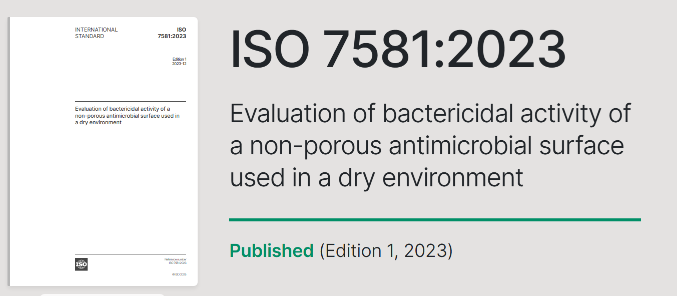ISO 7581:2023 干燥环境中使用的无孔抗菌表面杀菌性能评价Evaluation of bactericidal activity of a non-porous antimicrobial