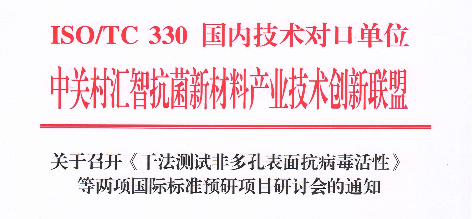 关于召开《干法测试非多孔表面抗病毒活性》等两项国际标准预研项目研讨会的通知